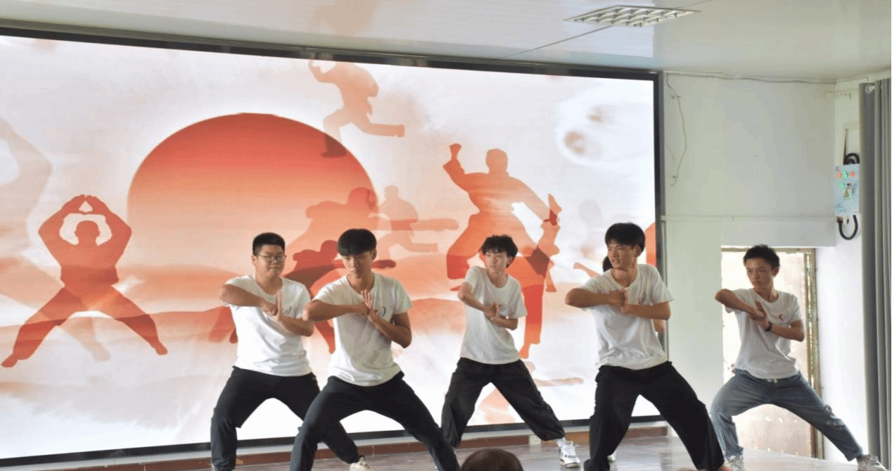 (图为全体男志愿者们表演军体拳 闵敏供图)