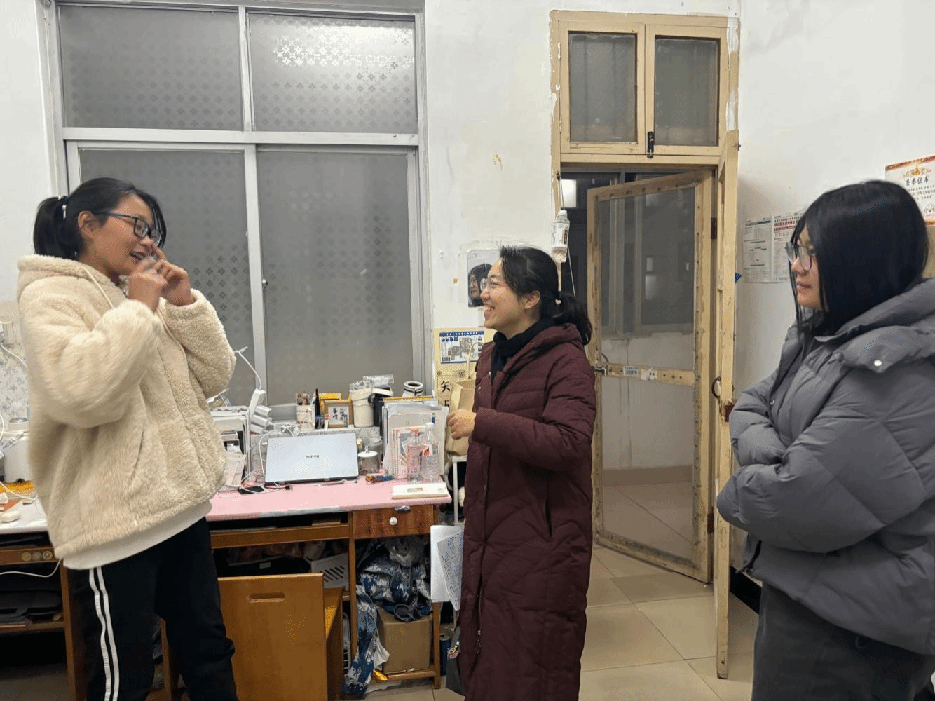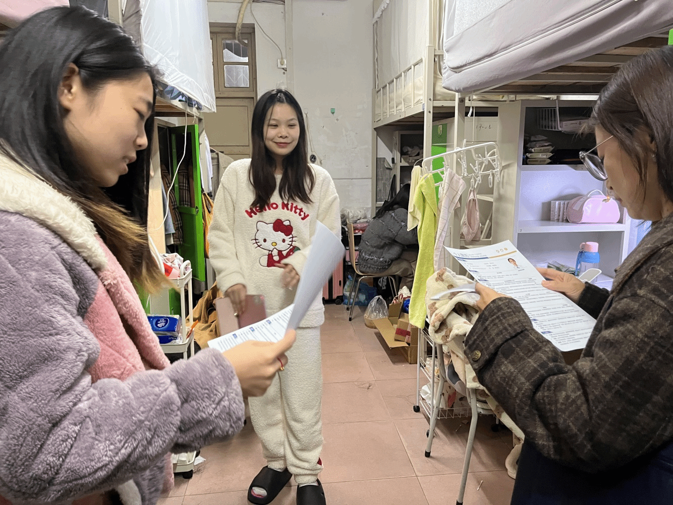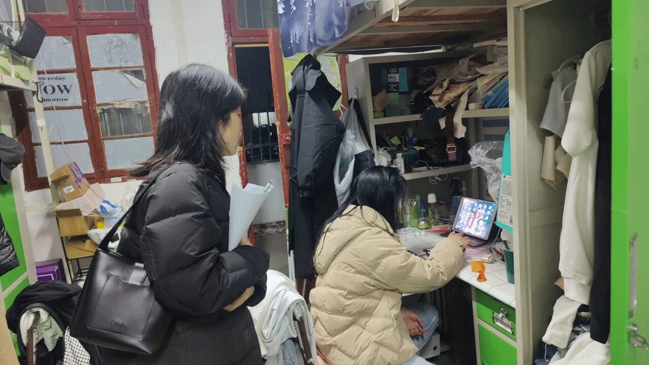 走访过程中,辅导员老师们还仔细查看宿舍的内务整理情况,对学生宿舍的安全隐患进行了逐一排查。肖书记嘱咐同学们要严格遵守学校的各项规章规定,注意寝室用水用电安全,注意防寒保暖,增强防骗意识,维护个人生命财产安全。