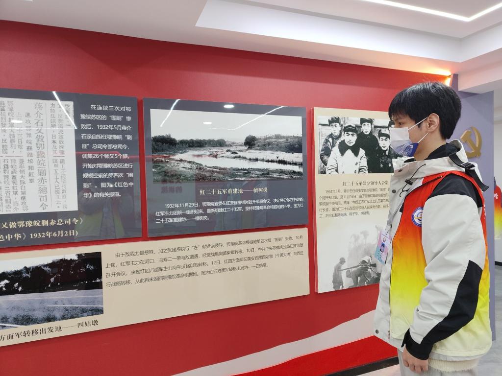 在王新亭将军红色教育基地,全体志愿者有序参观陈列的文物、照片、文献资料,聆听讲解员讲述王新亭同志的革命事迹,了解王新亭同志投身革命事业到为党为国家为民族鞠躬尽瘁的全过程,重温了王新亭同志从一名普通战士成长为中国人民解放军高级将领的光辉历程。在将军陈列馆,王新亭将军写的军事汇报以及抗战工具等,以及士兵们奔赴在战火前线的雕像让同学们身临其境,也激发了同学们的家国情怀和护国斗志。