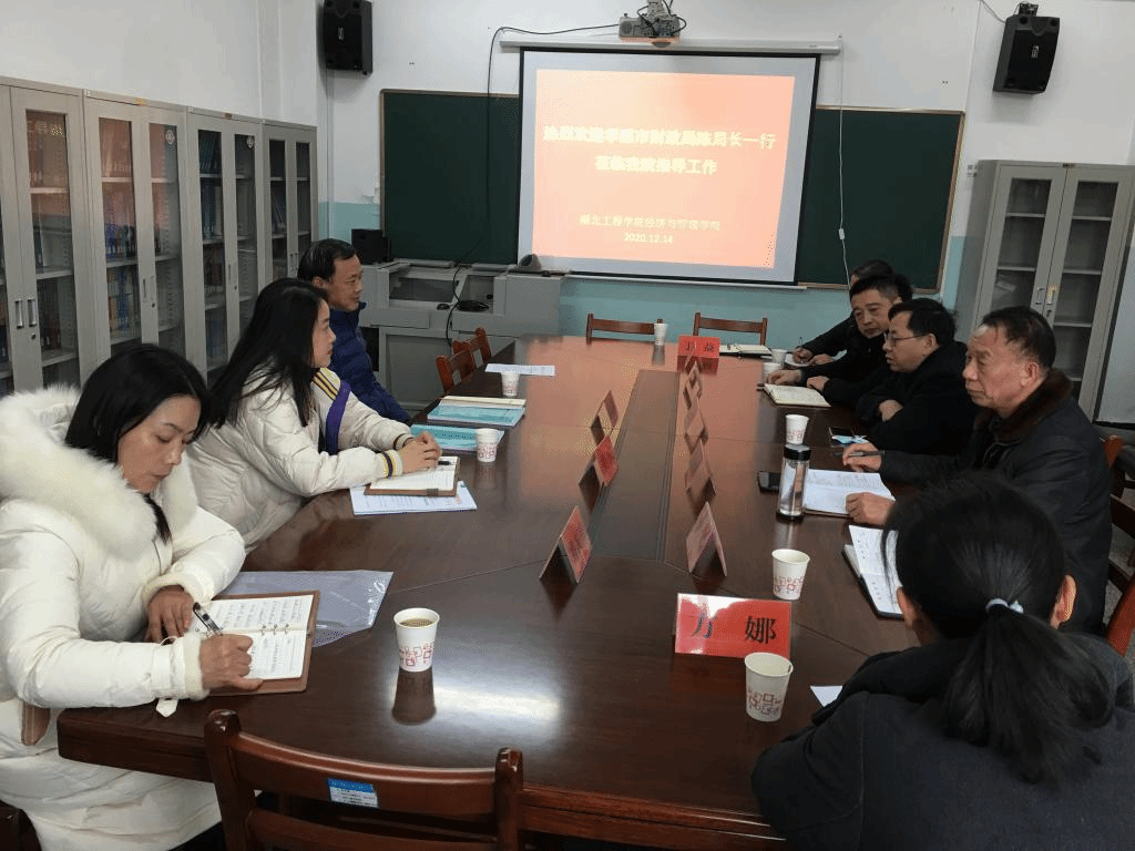 2020年12月14日,孝感市财政局副局长陈爱国、会计科科长吴俊、副科长鲁友珍一行来williamhill英国开展孝感市会计培训合作交流。副校长丁远坤教授、williamhill英国党总支书记胡金林教授、院长张辉教授及部分教师参加了交流会。