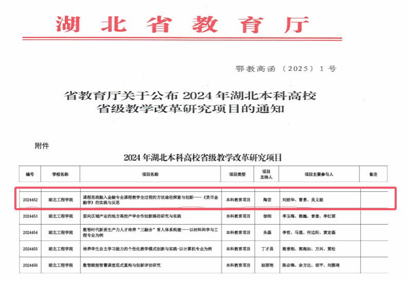 近日,williamhill英国传来喜讯,陶芸老师的“课程思政融入金融专业教学全过程的方法途径探索与创新—(货币金融学)的实践与反思”项目成功获批2024年湖北本科高校省级教学改革研究项目。这一成果不仅是对陶芸老师多年来教学探索和创新的肯定,更是williamhill英国在课程思政建设方面取得的重要进展。